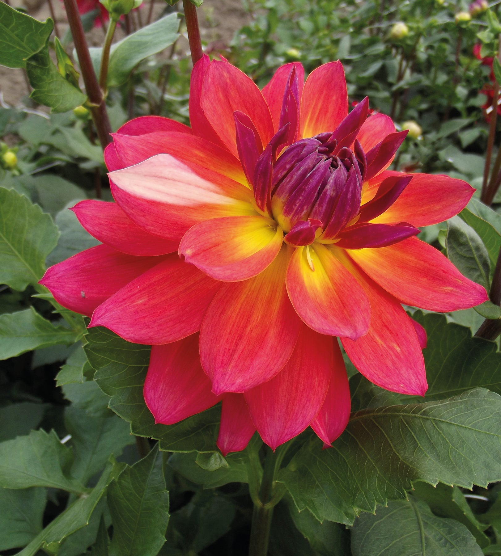 (Dahlia ’Firepot’) Hehkuvat, jättisuuret kukat. ’Firepot’ aloittaa kukinnan aikaisin kesällä ja kukinta jatkuu pakkasten tuloon saakka. Hyvin haarautuva, runsaasti kukkiva ja tukeva lajike, joka sopii mainiosti myös ruukkukasvatukseen.