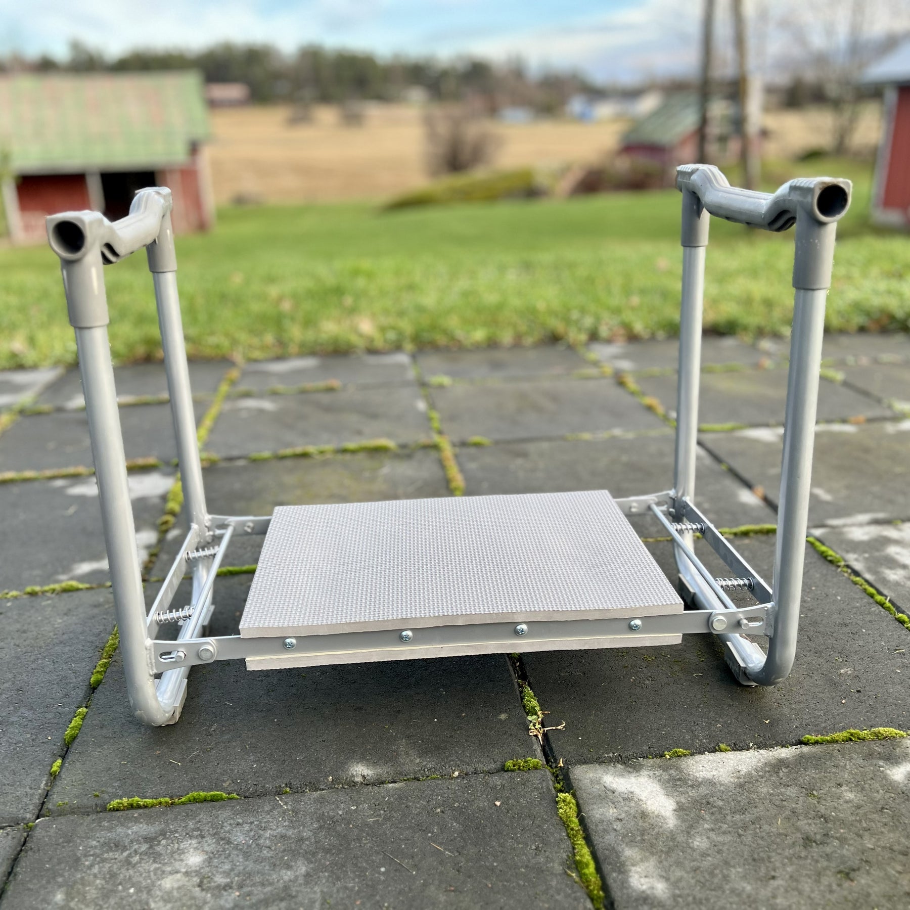 Polviasennossa paksu ja pehmeä pehmuste suojaa polvia kiviltä, soralta ja kovasta maanpinnasta. Leveä, tukeva jalusta antaa varmuutta liikkeisiin, eikä penkki huoju tai kippaa herkästi.