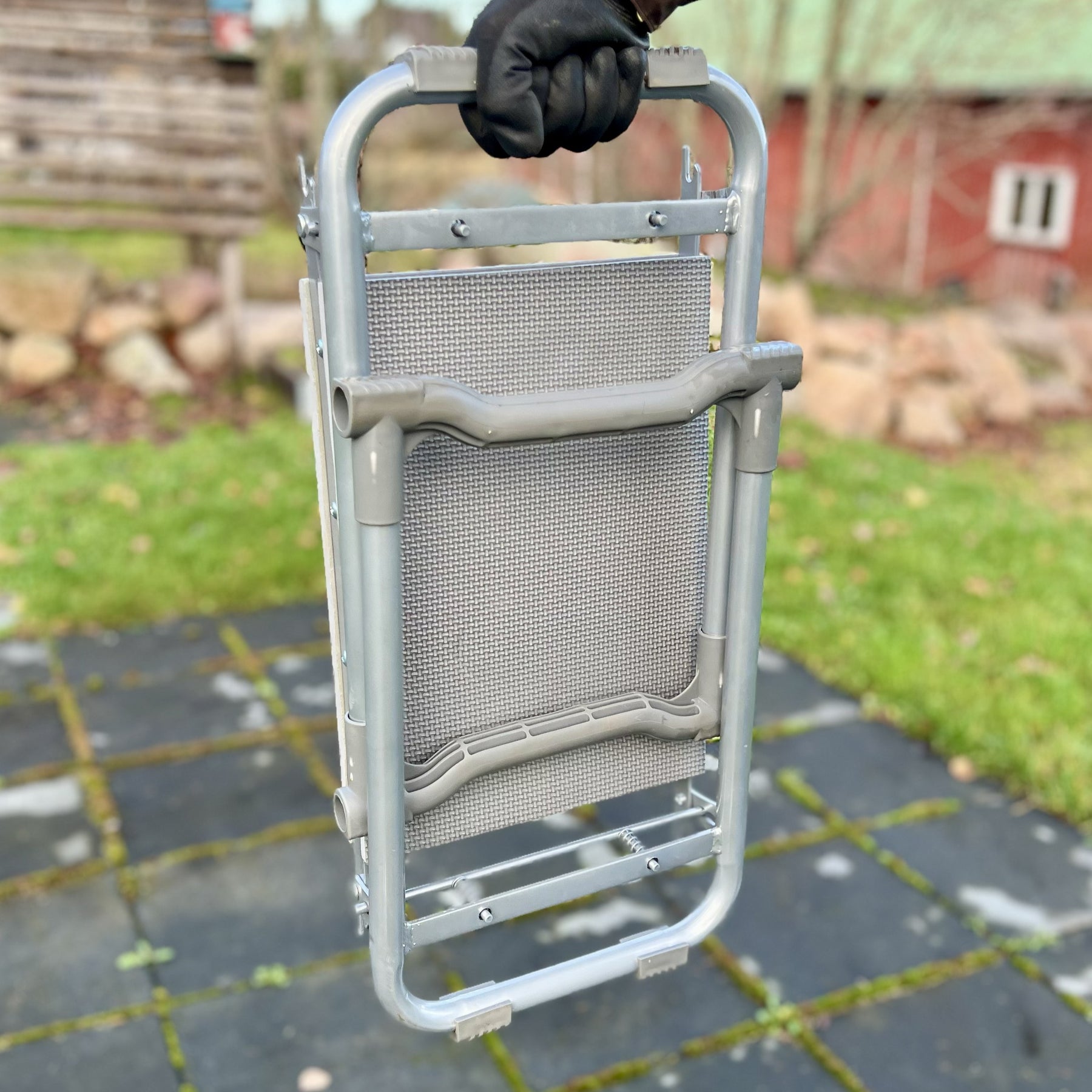 Extra paksu pehmuste, tukeva teräsrunko ja näppärä taittomekanismi tekevät siitä ihanteellisen kaverin niin kitkentään, istutuksiin kuin kahvitaukoihin kukkien keskellä.