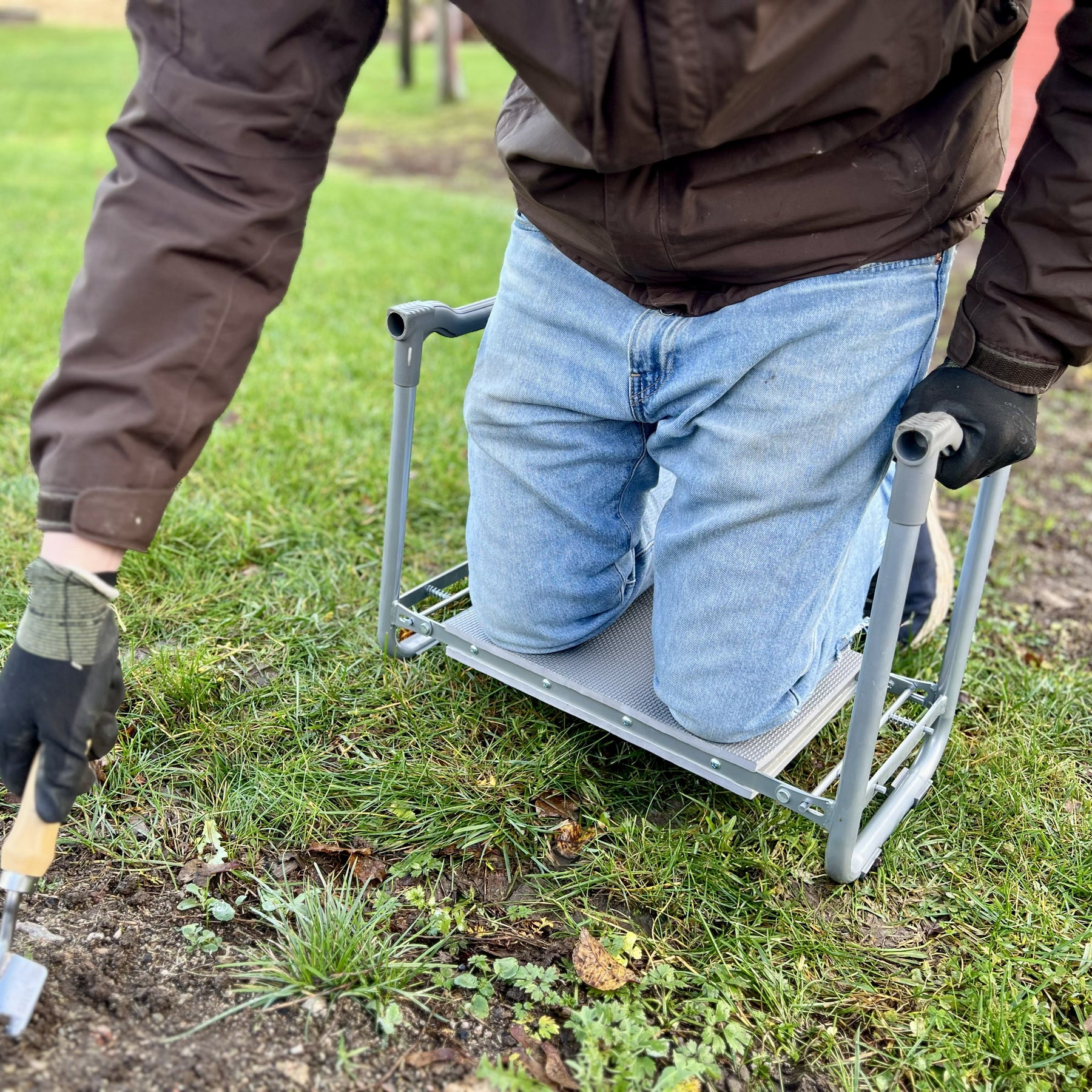 Puutarhurin Polvi-istuin 2-in-1 on moderni polvituki ja istuin samassa paketissa – erityisesti puutarhassa viihtyvälle.