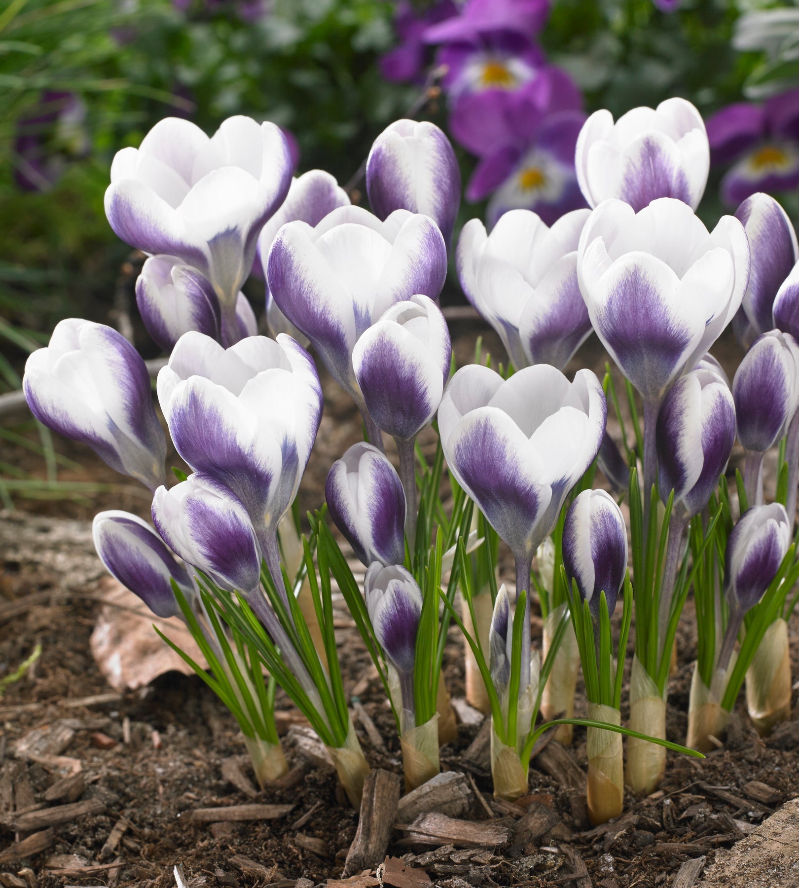 (Crocus chrysanthus ’Prins Claus’) Krookukset eli sahramit ovat näyttäviä isoina kasvustoina keväisessä puutarhassa. Krookukset ovat helppohoitoisia ja pitkäikäisiä.