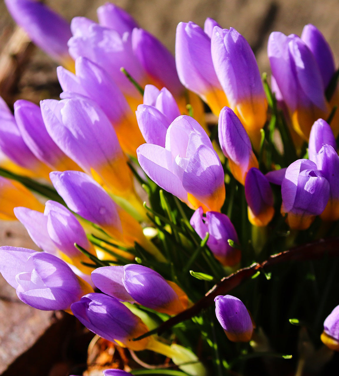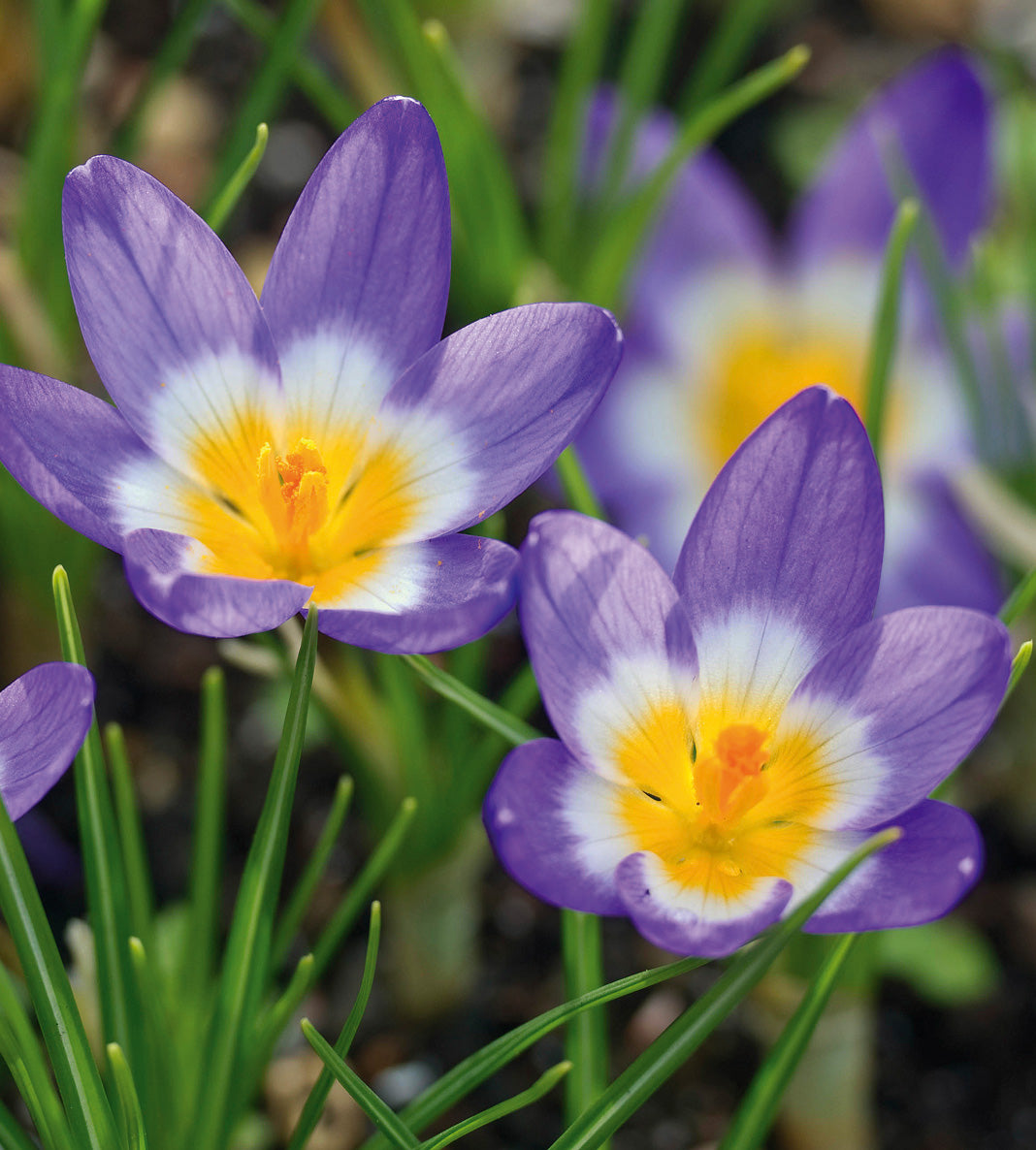 (Crocus chrysanthus ’Tricolor’) Krookukset eli sahramit ovat näyttäviä isoina kasvustoina keväisessä puutarhassa. Krookukset ovat helppohoitoisia ja pitkäikäisiä.
