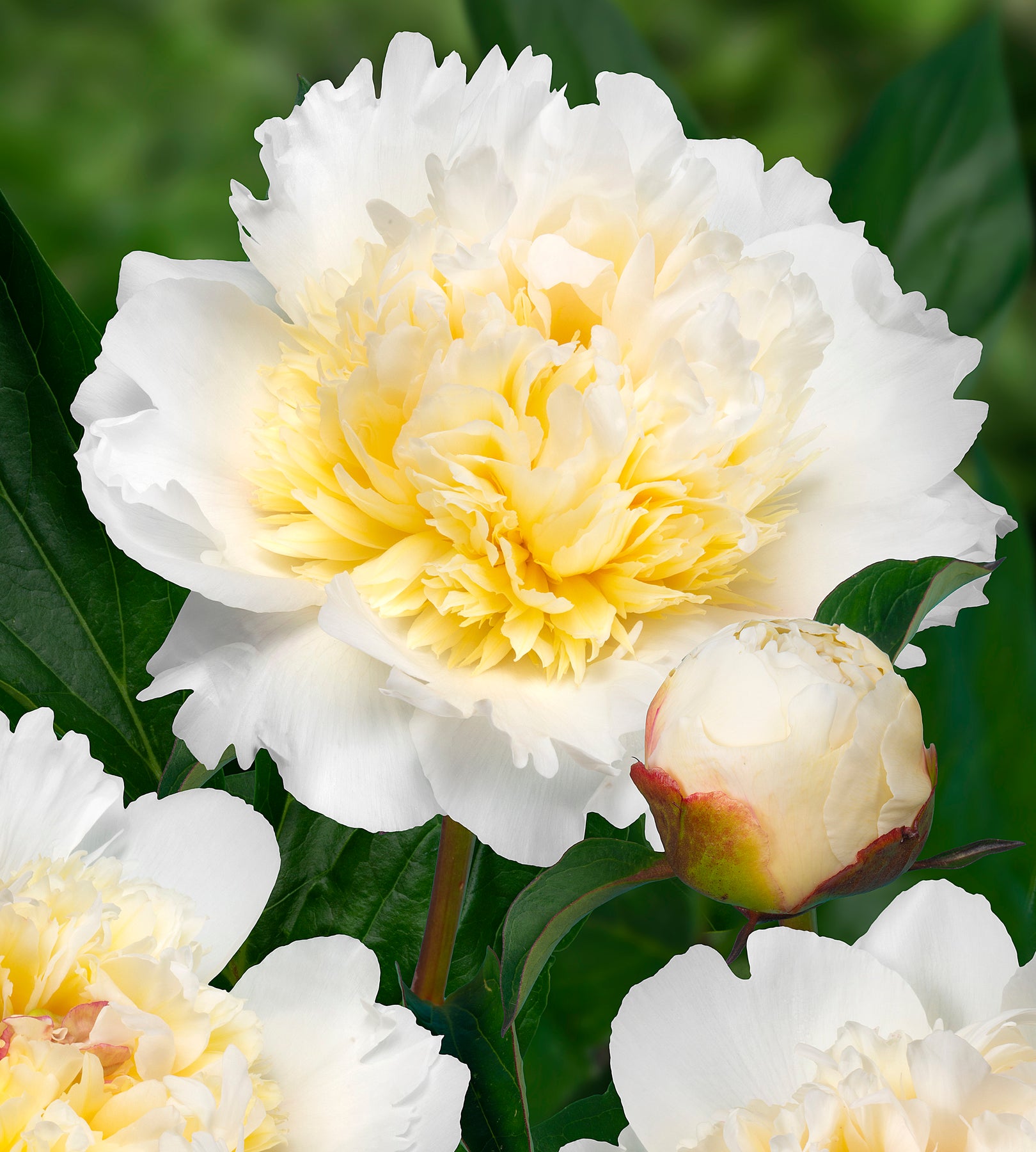Puhtaanvalkoinen pionilajike, jonka suuret, puolikerratut kukat avautuvat. . . Lue lisää >