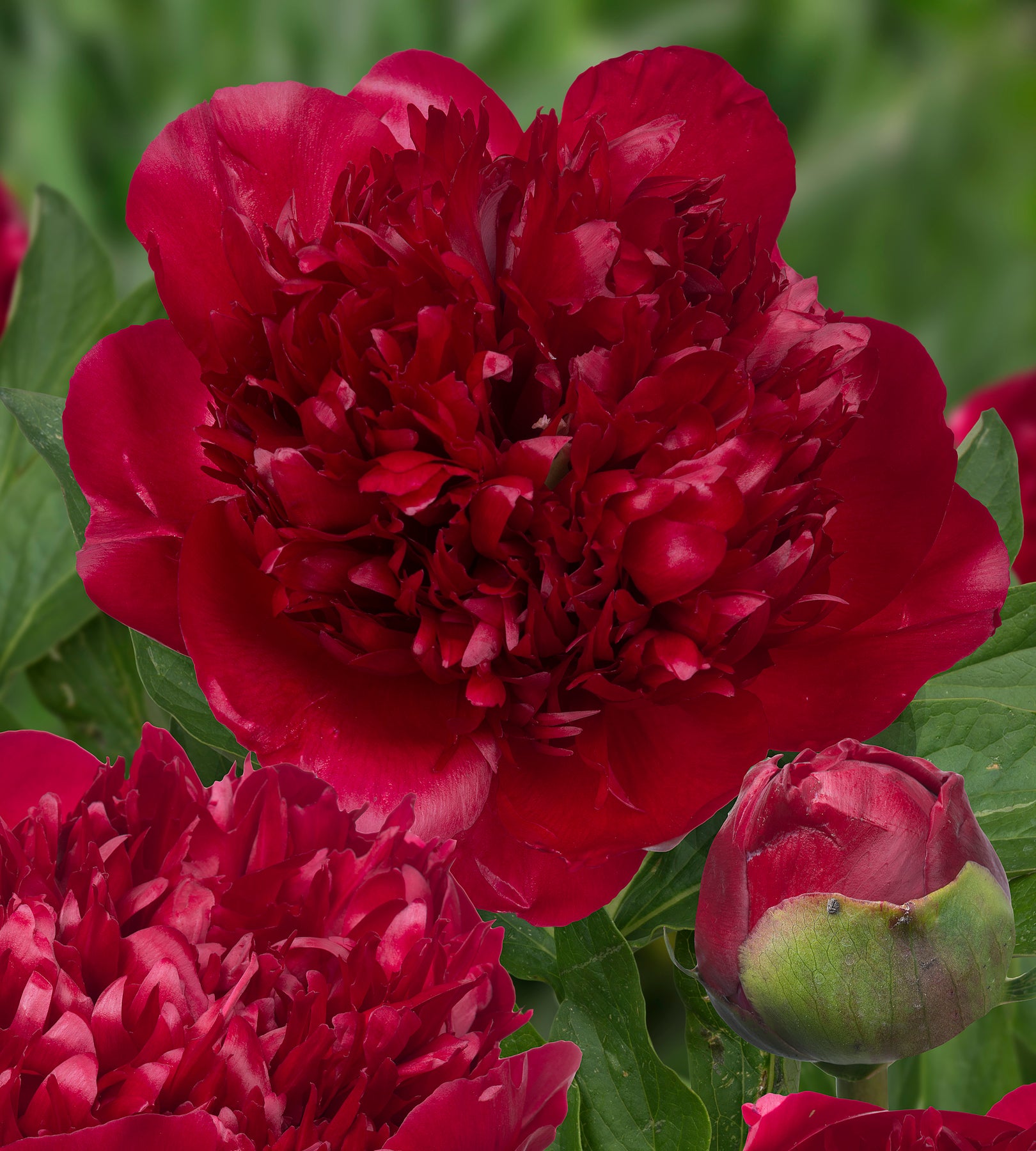 Näyttävä ja ylellinen pionilajike, joka tuo istutuksiin dramaattista punaista loistoa ja erittäin kestävän, runsaan kukinnan.