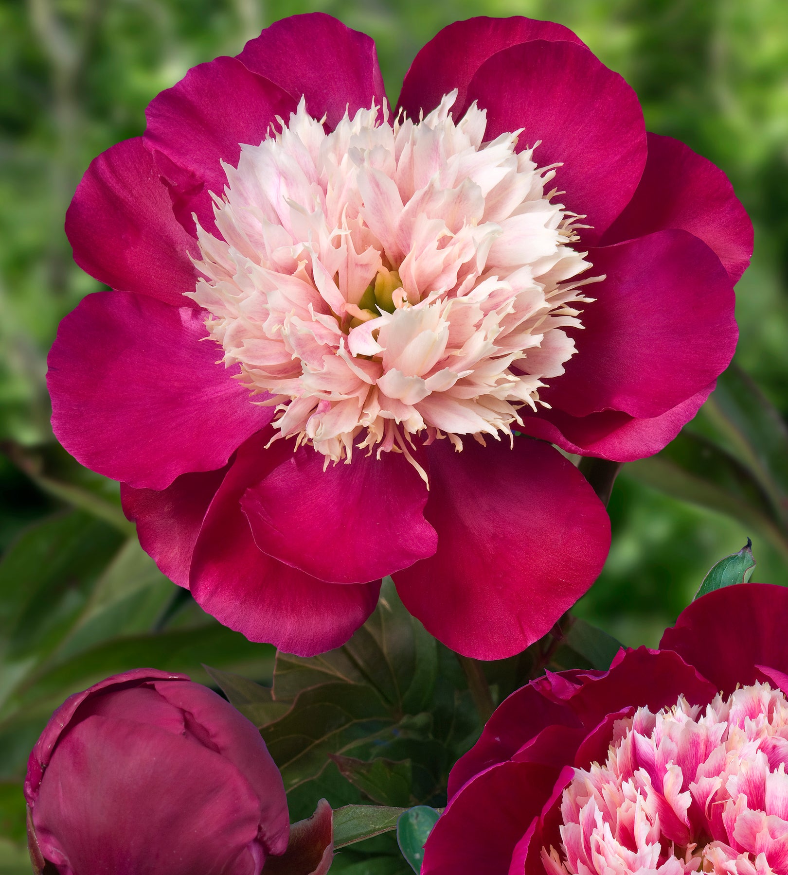 Kaksiväristen pionien rakastettu klassikko. Kirkkaan fuksianväriset ulkoterälehdet. . . Lue lisää >
