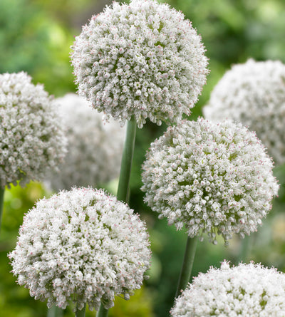 (Allium ’White Cloud’) Näyttävän koristelaukan kukinnoissa on kymmenittäin pieniä valkoisia, tähtimäisiä kukkia. Ei juurikaan maistu kauriille, jäniksille eikä myyrille.